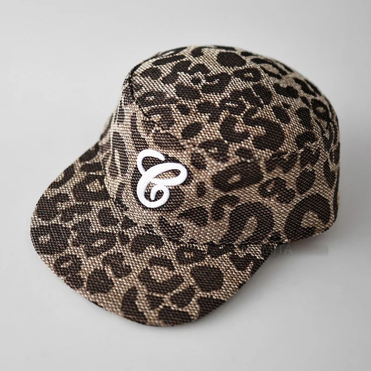 Retro Flat Top Embroidered Letter Hats Casual Versatile Duckbill Leopard Print Flat Brim Baseball Cap for Women And Men
