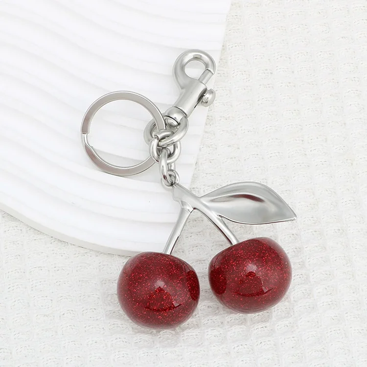 Silver/Gold Cherry Fruit Bag Charm Keychain Red Cherry Keyring for Elegant Women Backpack Purse Pendant Jewelry Gift